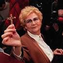 sie ein goldenes Kreuz in die Höhe und sagte: - Ich wasche meine Hände